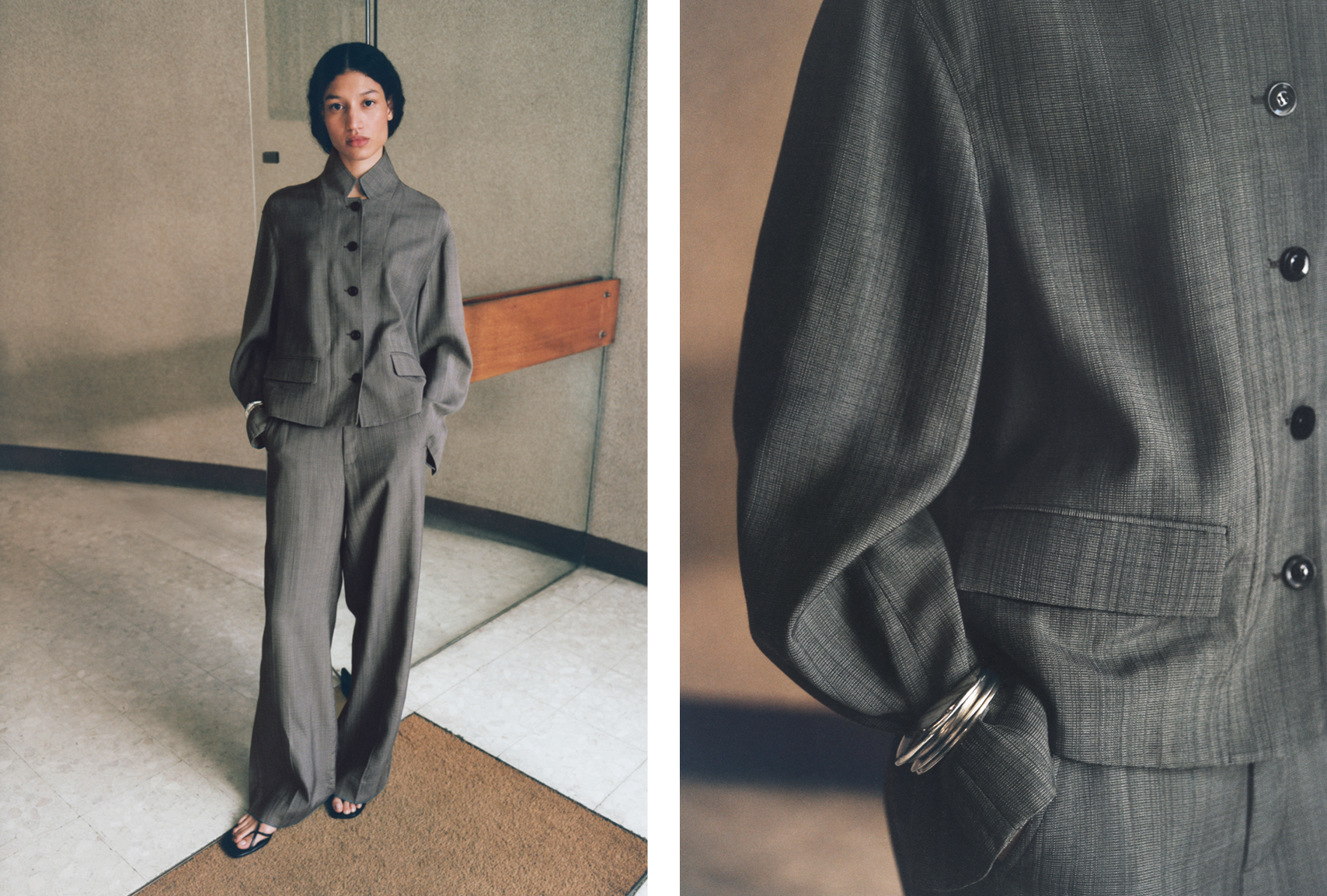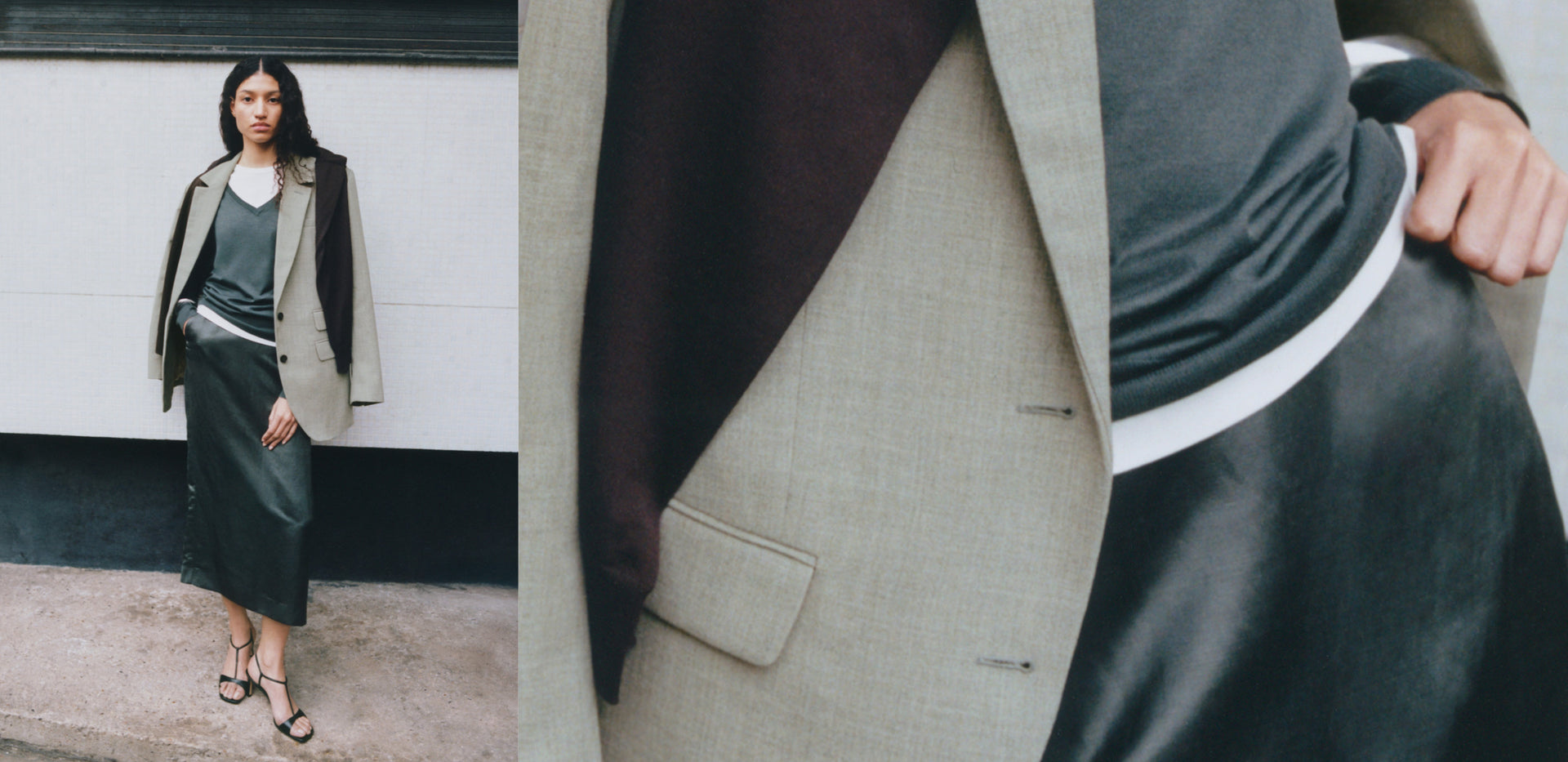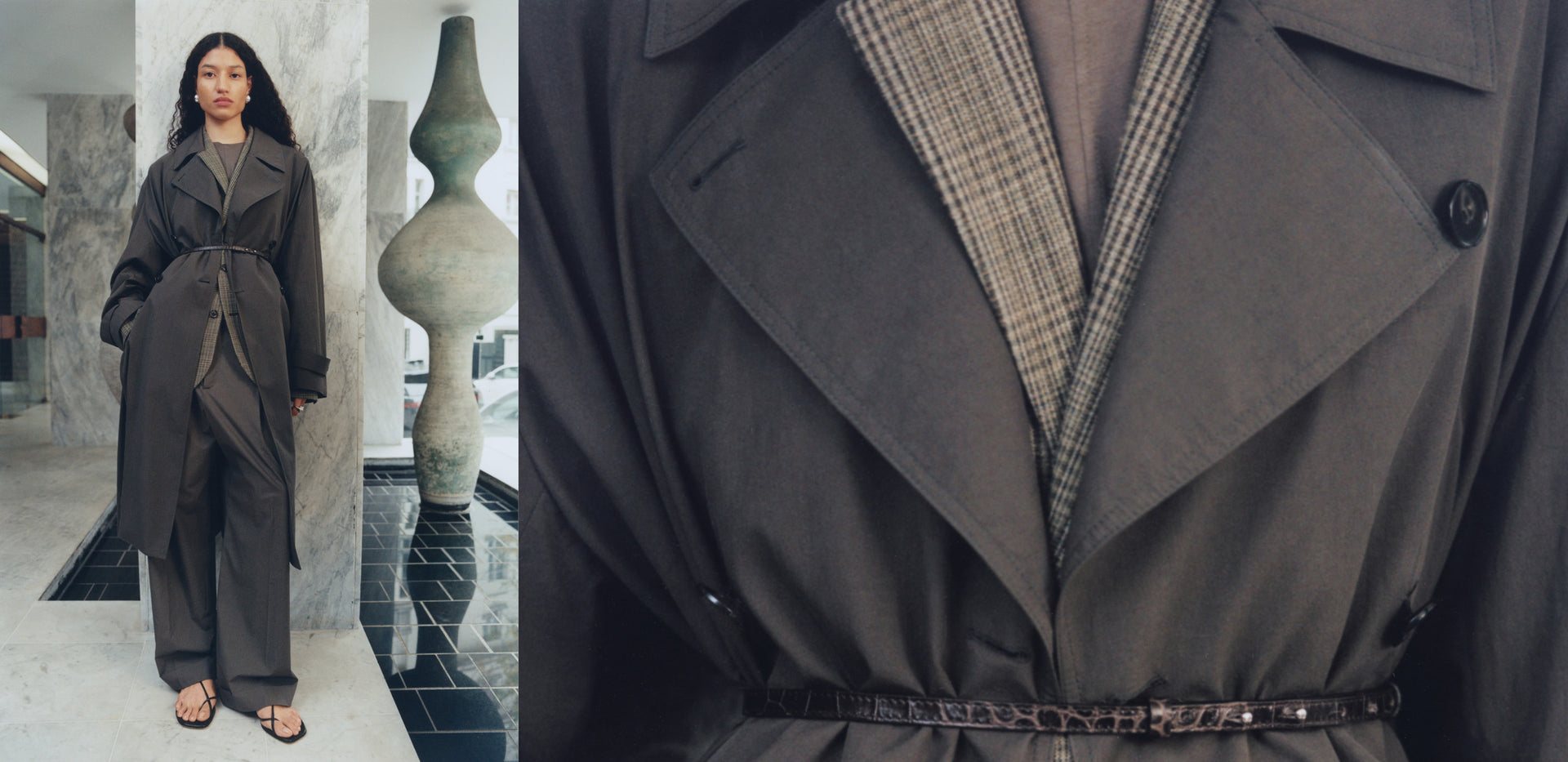A palette of white, beige and chalk tones shapes an urban and feminine wardrobe. Materials are layered and combined with understated elegance: double-face heathered wool, supple leather, poplin and textured denim.