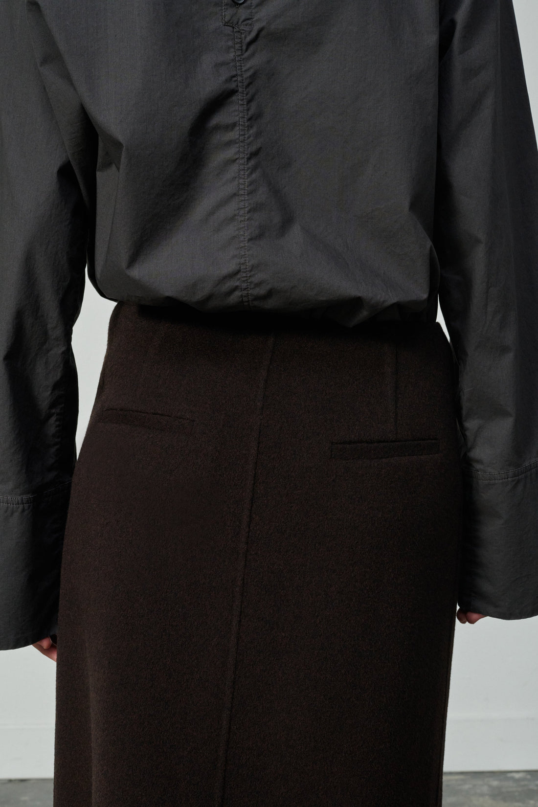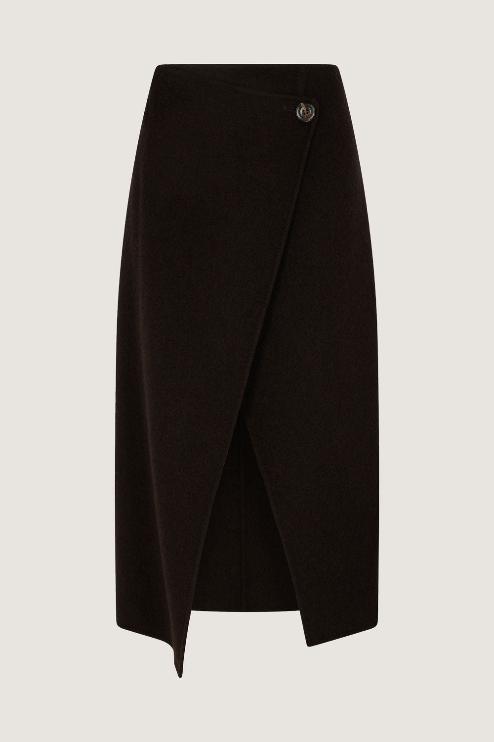 Asymmetrical double-sided wool wrap skirt - Asymmetrical wrap skirt- A-line, high waist- Buttoned on the side- Welt pocket on the back- Front and back darts