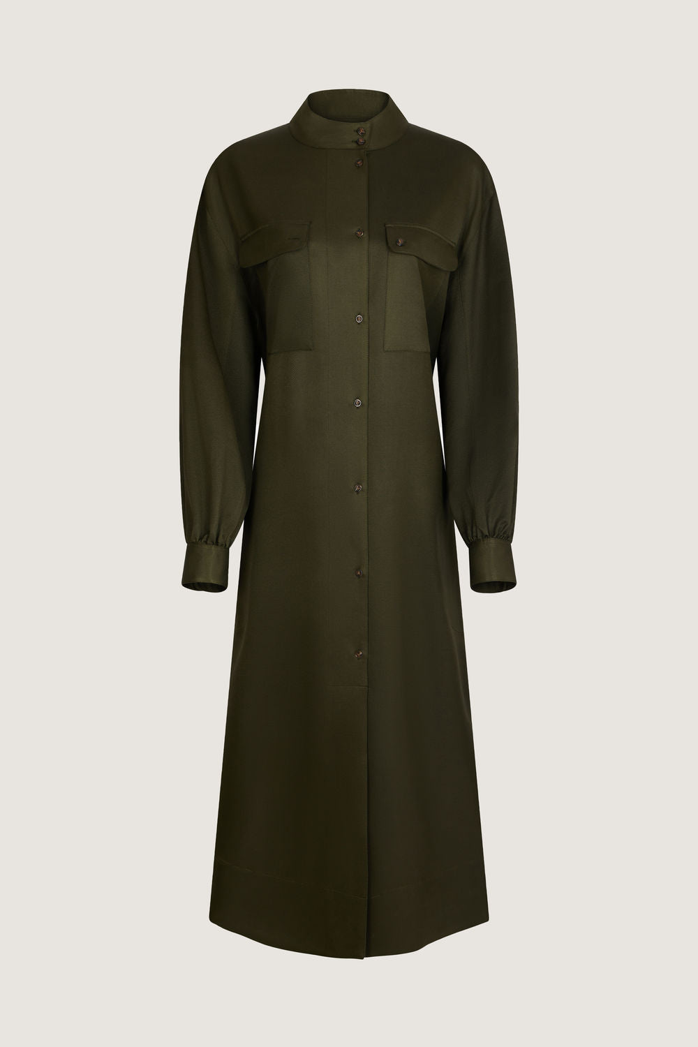 Silk and wool button neck dress khaki